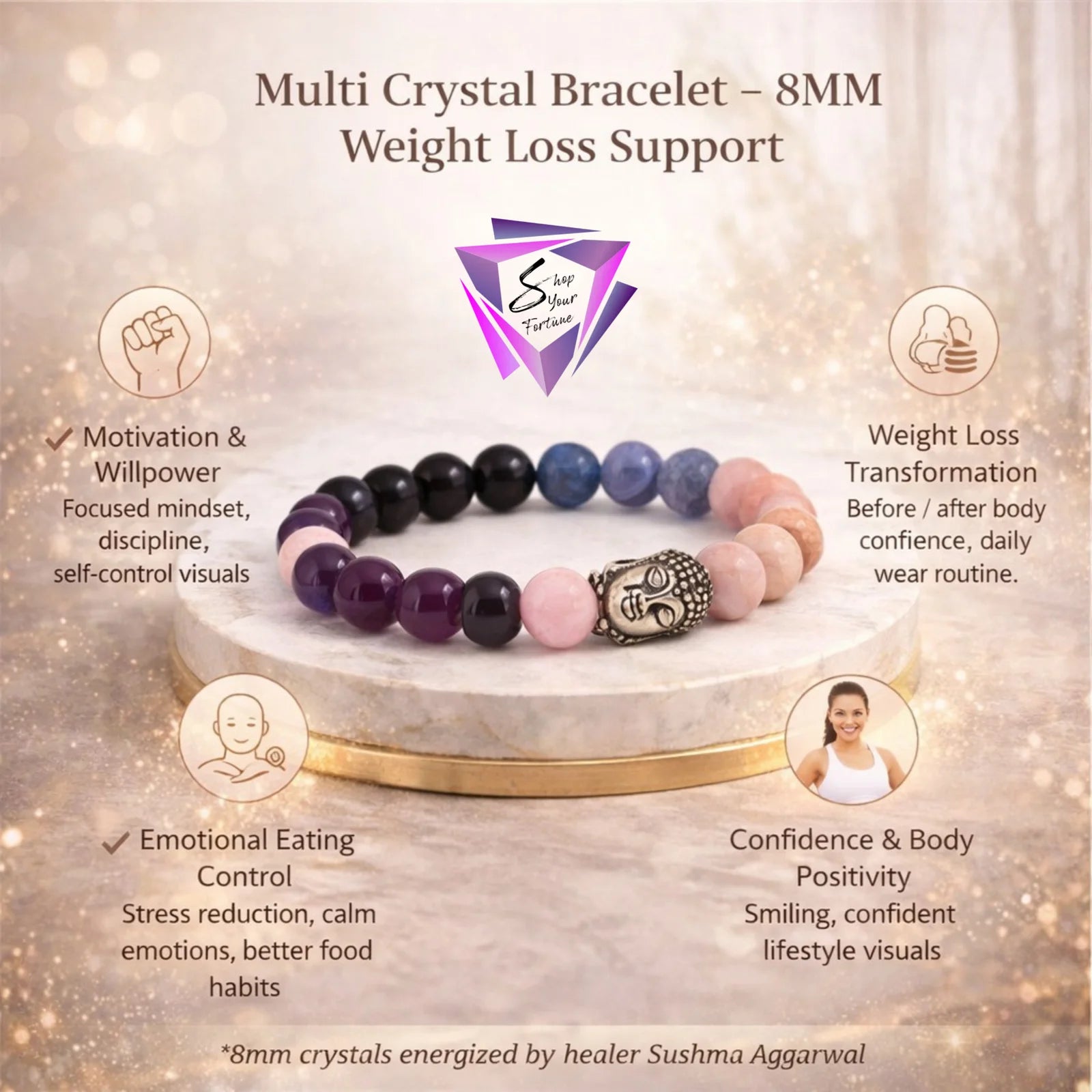 Achieve your health and fitness goals with our Multi-Crystal Bracelet, designed to support weight loss, boost metabolism, and balance energy levels. This unique combination of powerful healing crystals works together to enhance motivation, willpower, and physical well-being, making your weight loss journey smoother and more effective.