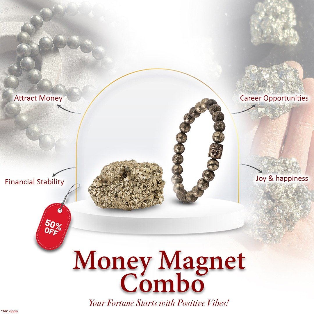 Bring home the powerful energy of Pyrite with this specially curated combo of Pyrite Cluster and Pyrite Bracelet. Known as the “Stone of Wealth & Protection”, Pyrite attracts prosperity, shields from negativity, and boosts confidence.